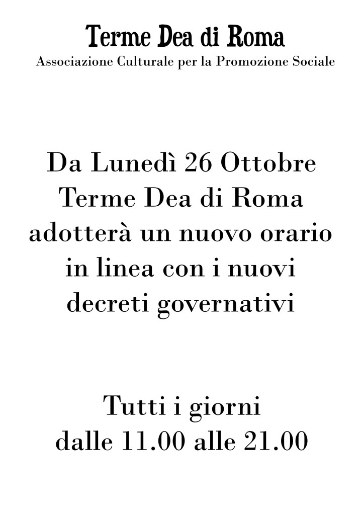 L’Associazione Culturale Terme Dea di Roma di via Persio, dopo 29 anni di Storia rischia seriamente di non riaprire più. Siamo davvero costretti a chiedere urgentemente un libero contributo a tutti gli amici che in questi lunghi anni ci hanno conosciuto e scongiurare la fine delle prime Terme di tutto il centro sud d’ Italia. Vero e proprio presidio storico di libertà culturale della capitale. Chiederemo il tuo esplicito assenso, per consentirci di ricordare per sempre la tua generosità. Aiutaci!